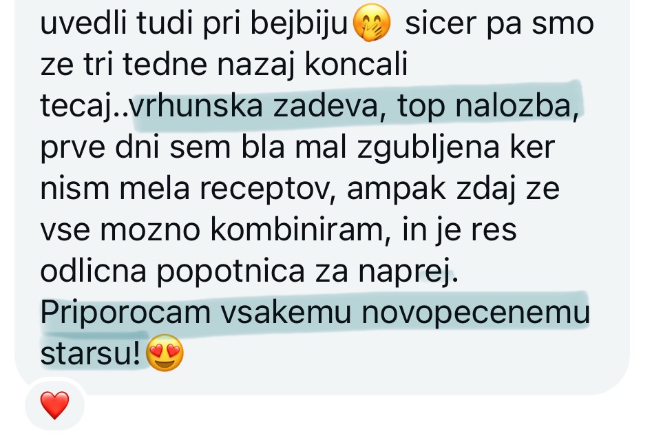 28-dnevni tečaj uvajanja goste hrane je namenjen staršem in dojenčkom popolnoma na začetku uvajanja goste hrane. Tečaj vas vodi čez prve 4 tedne uvajanja in vključuje 28-dnevi plan obrokov in vso potrebno teorijo.