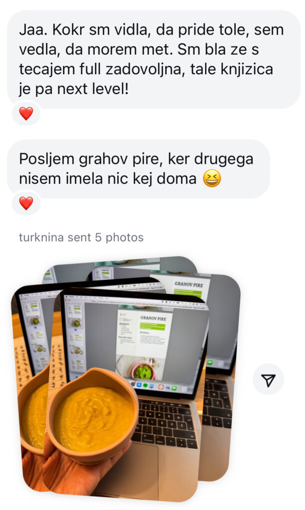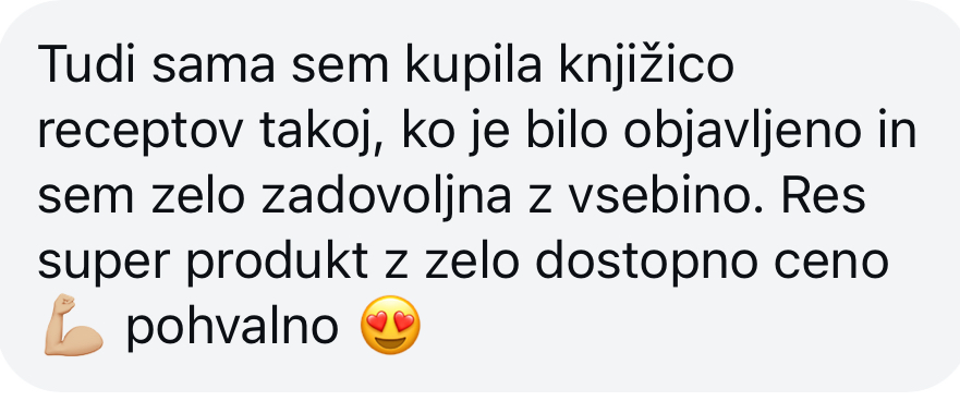 Po potrditvi plačila boste prejeli dostop do platforme, preko katere si lahko knjigo z recepti v PDF-obliki tudi prenesete.